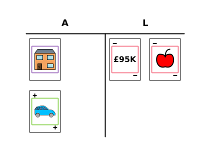 ![Balance sheet. [A] Purple card with a house; green card with a car. [L] Pink card with £95K; pink card with apple. Balance sheet. [A] Purple card with a house; green card with a car. [L] Pink card with £95K; pink card with apple.](https://substackcdn.com/image/fetch/$s_!raWI!,w_1456,c_limit,f_auto,q_auto:good,fl_progressive:steep/https%3A%2F%2Fsubstack-post-media.s3.amazonaws.com%2Fpublic%2Fimages%2F53804cfd-003e-4009-807e-f997e1fd6203_420x300.png)