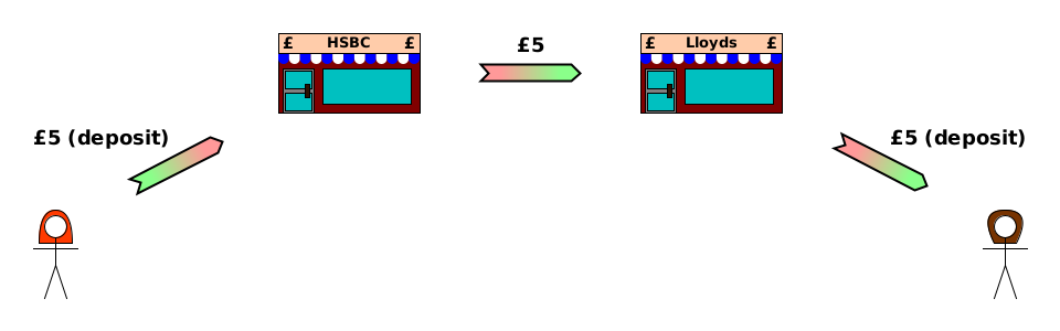 Notice too that the structure of the diagram is exactly the same as section [4.2] step 1 (see below), where Alice (banking with HSBC) paid Charlotte (banking with Lloyds):